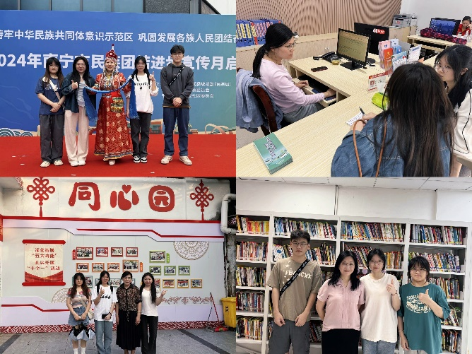 4月9日,团队成员走进蟠龙社区,参与了2024年南宁市民族团结进步宣传月启动仪式。活动现场热闹非凡,团队观看了民族特色舞蹈、民族服饰走秀等表演,品尝了特色美食,体验了非遗手工制作……过程中感受到了较为浓厚的少数民族氛围。活动结束后,团队成员与社区工作人员进行了交流学习,了解到社区是通过党建引领、深入挖掘资源、自主探究“136”工作机制、打造特色品牌等加强做好民族工作,为社会工作参与少数民族社区基层治理提供了有效借鉴。