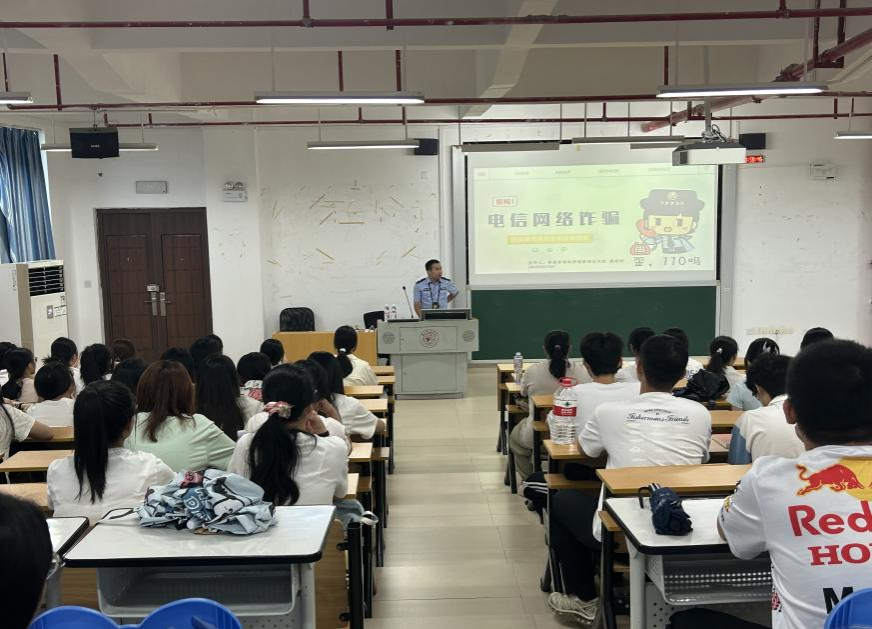 为提升新生防范电信网络诈骗的意识和能力,我院分别于9月9日、9月12日在五合校区文综楼801教室、文综301教室举办了“防诈于心,护航青春”反诈宣传培训会。本次培训邀请南宁市公安局仙葫派出所民警赖世祥警官进行主讲,培训主要面向2025级全体新生,通过民警专业讲解和真实案例教学,切实增强学生识诈、防诈能力。
