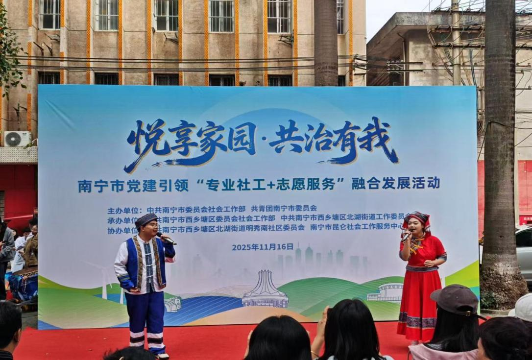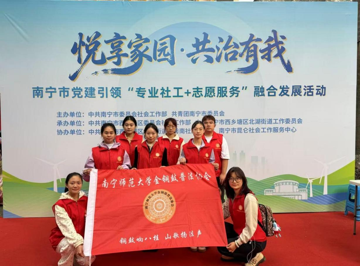 11月16日,新2手机会员端网址金铜鼓普法协会、小法宝普法课堂创新实践项目组及山歌普法探索广西民族乡村法治宣传教育新模式项目组受邀参加南宁市党建引领“专业社工+志愿服务”融合发展活动。本次活动是由中共南宁市委员会社会工作部及共青团南宁市委员会联合主办的志愿宣传活动,为明秀南社区群众带来了一场别开生面的法治文化盛宴。