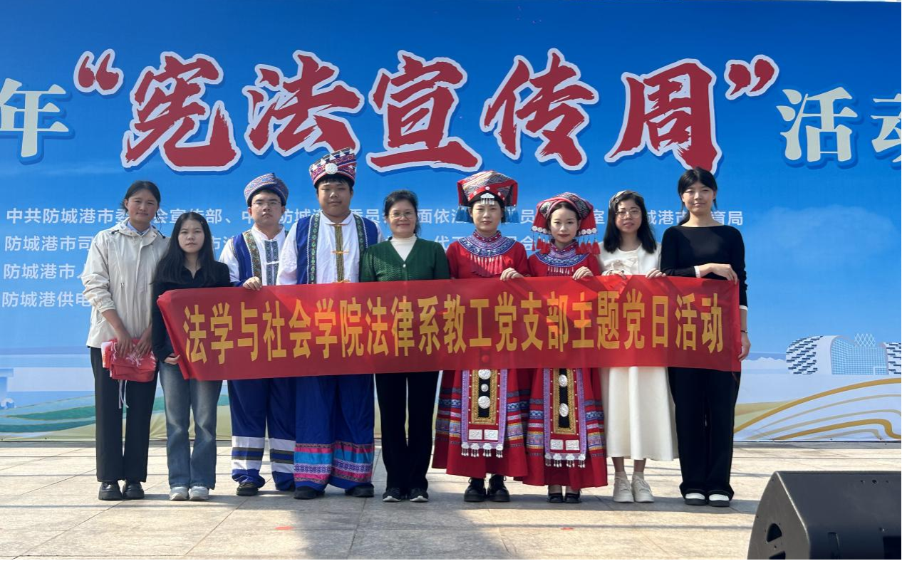为推动法治宣传教育工作向基层延伸,法律系教工党支部作为广西高校“双带头人”教师党支部书记“强国行”专项行动团队,深化实践育人,突出学科优势和专业特色,积极探索创新普法形式,将非遗文化与法治宣传深度融合,以山歌为载体,开展了一系列独具特色的普法活动,打造金铜鼓山歌普法品牌,取得了显著成效。